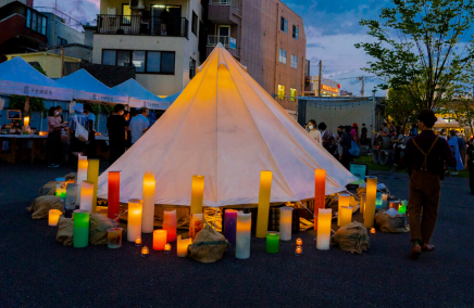 日常の生活に寄り添うキャンドルをテーマに、羽根木の工房でキャンドルや石けんを作っています。今回は廃棄されるココナッツオイルで製作したアップサイクルキャンドルで、下北沢の街をデコレーションします。